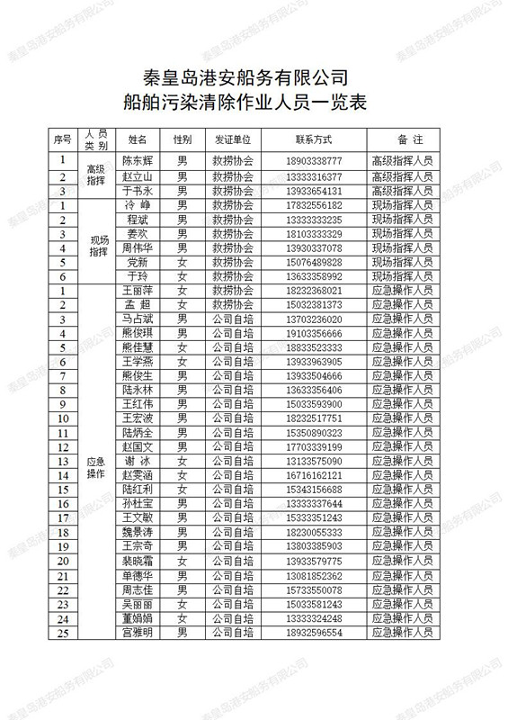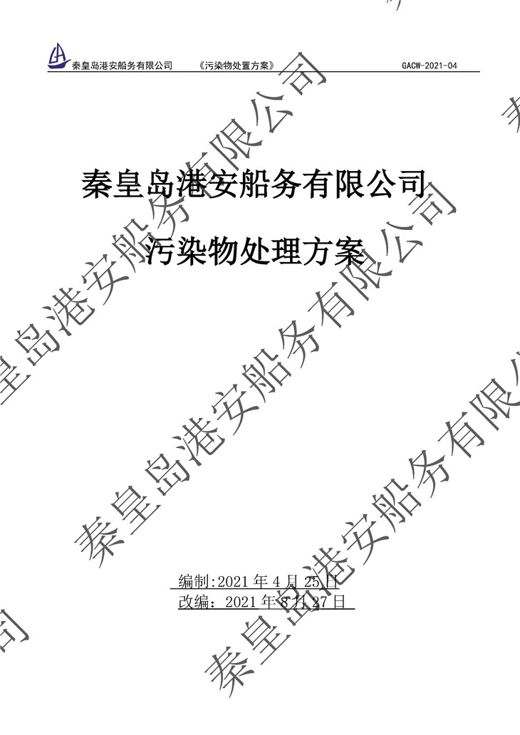 秦皇岛港安船务有限公司成立于2021年3月25日,2021年8月28日于公司网站公布“根据《中华人民共和国船舶污染海洋环境应急防备和应急处置管理规定》及其附表的《能力要求》秦皇岛港安船务有限公司的应急清污能力现已符合《能力要求》规定的二级能力要求。”